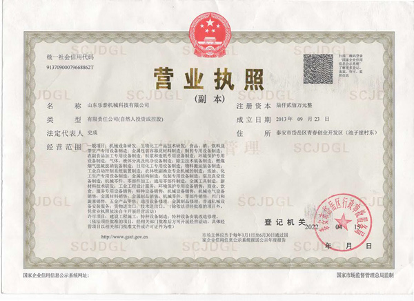 山東樂泰機(jī)械科技有限公司始建于2013年,是一家股份制高新技術(shù)企業(yè),擁有140多名各類中高級技術(shù)和技能人才,購置了大型激光切割機(jī)等先進(jìn)生產(chǎn)設(shè)備和粗糙度檢測儀等精密檢測設(shè)備。公司具有D級壓力容器的設(shè)計及制造資質(zhì),通過了ISO9001質(zhì)量管理體系認(rèn)證和3C認(rèn)證。 公司專注于中厚板及薄壁不銹鋼非標(biāo)儲罐、發(fā)酵罐、種子罐、臥式結(jié)晶機(jī)、立式結(jié)晶罐、提取罐、雙層酒精罐、沉降罐、流化床等干燥系統(tǒng)設(shè)備的設(shè)計及制造。我們致力于為淀粉糖、生物發(fā)酵、制藥、釀酒、調(diào)味品、飲料、果蔬汁、乳制品、大豆分離蛋白、酶制劑、樹脂吸附等領(lǐng)域提供不銹鋼成套裝備。多年來,我們已經(jīng)為全國百家客戶提供了服務(wù),并成功出口產(chǎn)品到法國、智利、美國、土耳其和越南等國家。